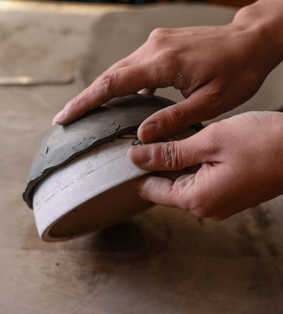 Realizzate a mano, partendo da una lastra di argilla spessa circa 0,8mm e posizionata su un controstampo, le ciotole licheni sono sorelle dei piatti fattiamano la cui natura semplice e intuitiva è svincolata dal modello perfezione come sinonimo di bellezza.