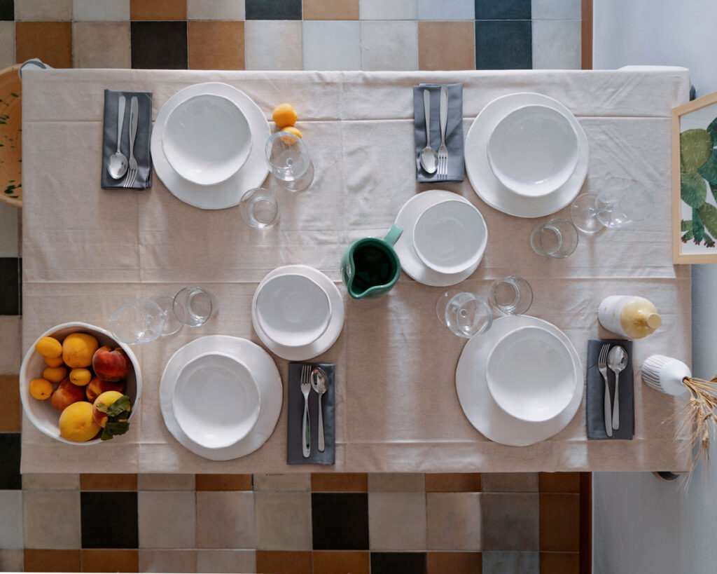Si tratta di ceramiche in argilla rossa che forse più di tutte raccontano la ricerca verso un artigianato lontano dall’industriale. Piatti, coppe, tazze tutti diversi tra loro ma accomunati dal processo di genesi. I piatti fondi, ad esempio, prendendo in prestito una ciotola sulla quale posizioniamo una lastra di argilla da 1cm circa di spessore, che poi tagliamo e mettiamo a seccare in attesa delle rifiniture.