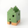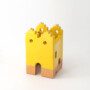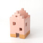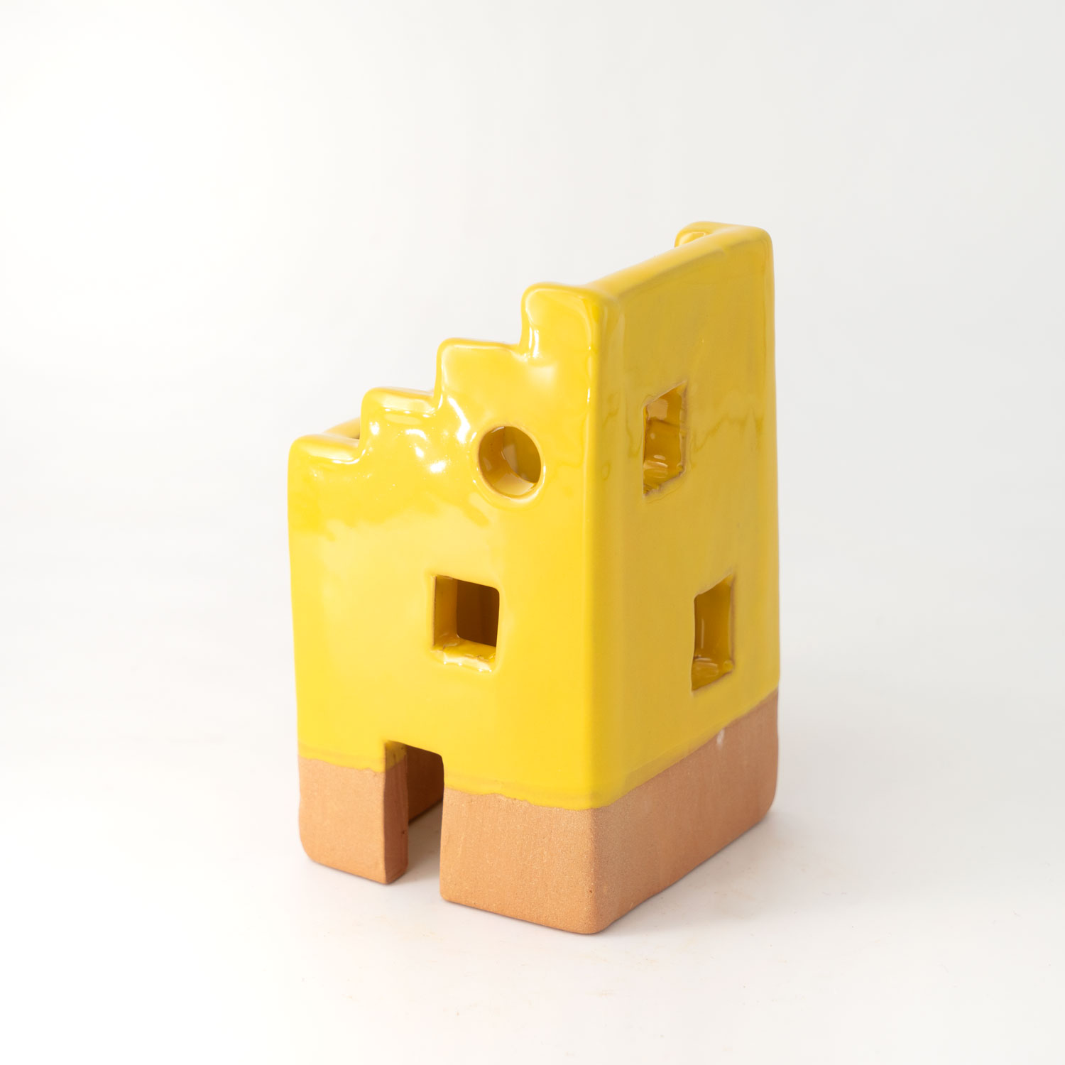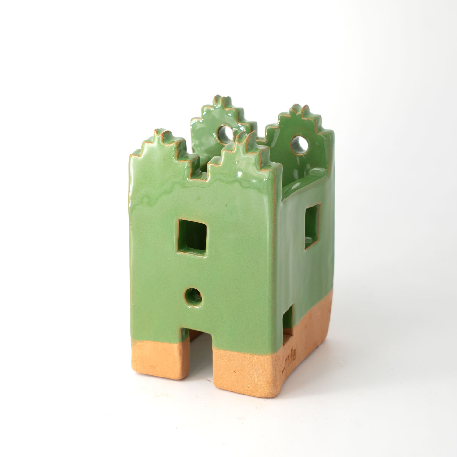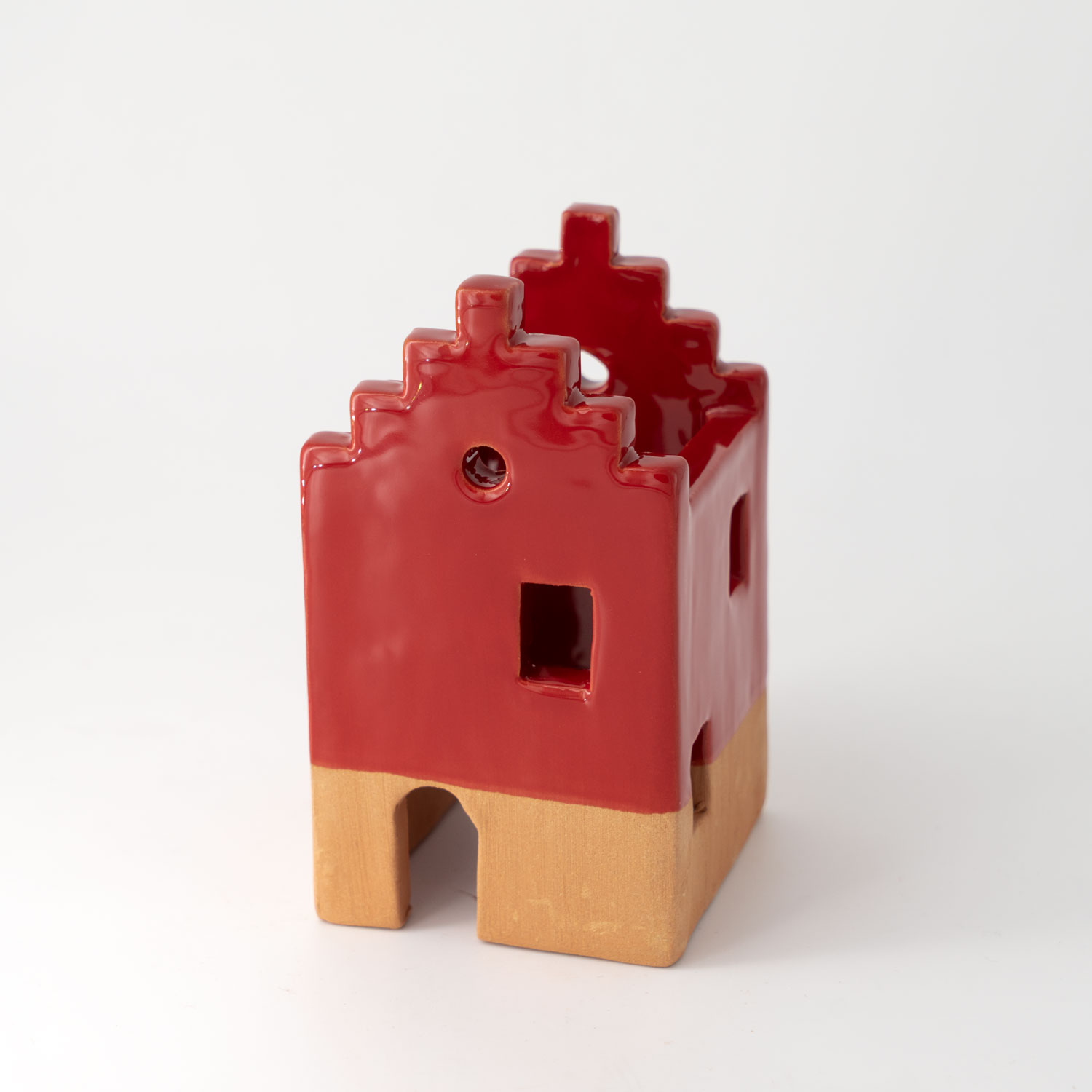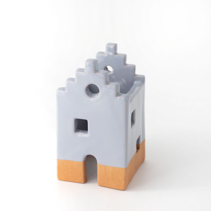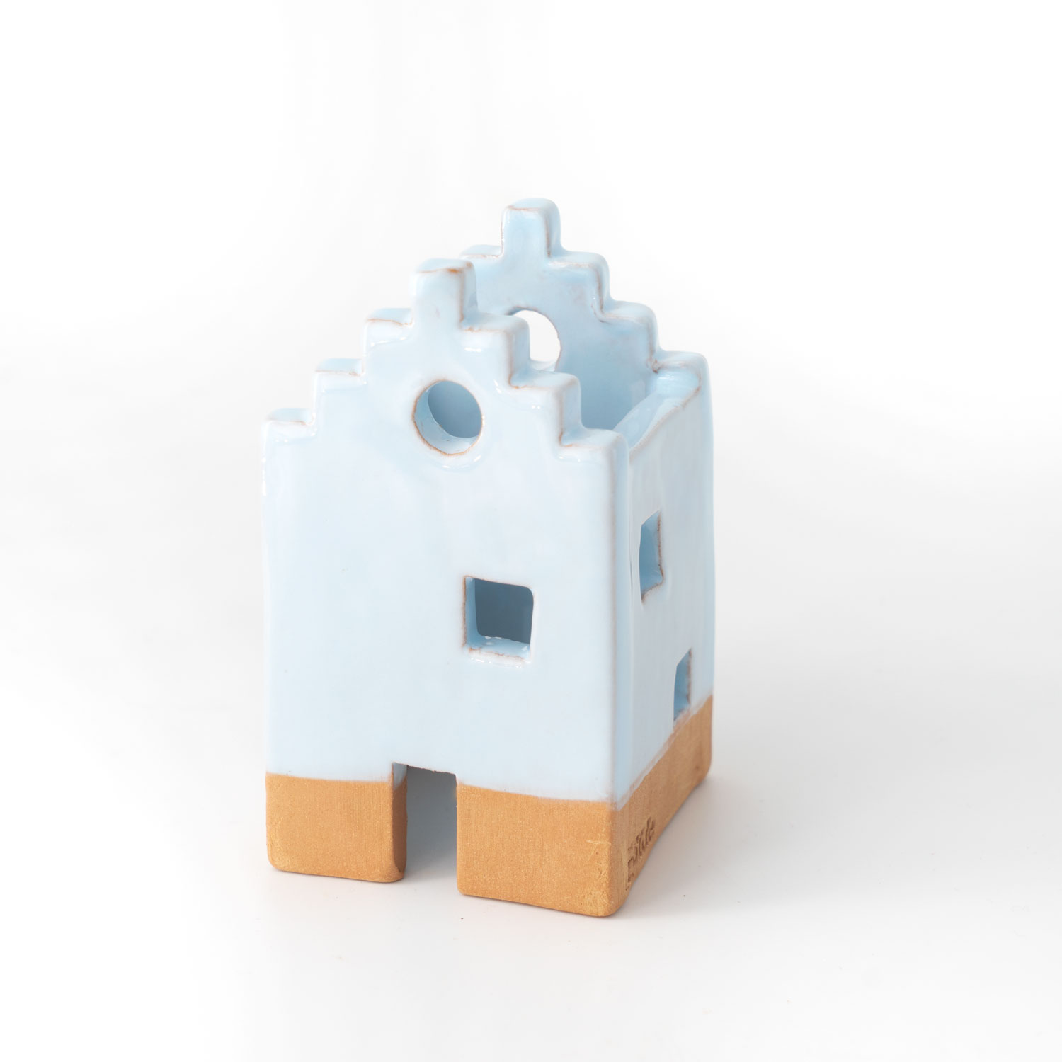 Modellare l’argilla rappresenta una via di narrazione del territorio in cui viviamo, un approccio multidisciplinare che coinvolge arte, architettura, sociologia, design. Realizzate a mano in tutte le fasi, le casette portacandela sono ispirate alle umili abitazioni contadine dei Sassi di Matera dichiarati Patrimonio Mondiale dell’Umanità dall’UNESCO, con il loro caratteristico profilo scalettato che in facciata definisce forse l’unico vero decoro funzionale a mascherare le falde del tetto.