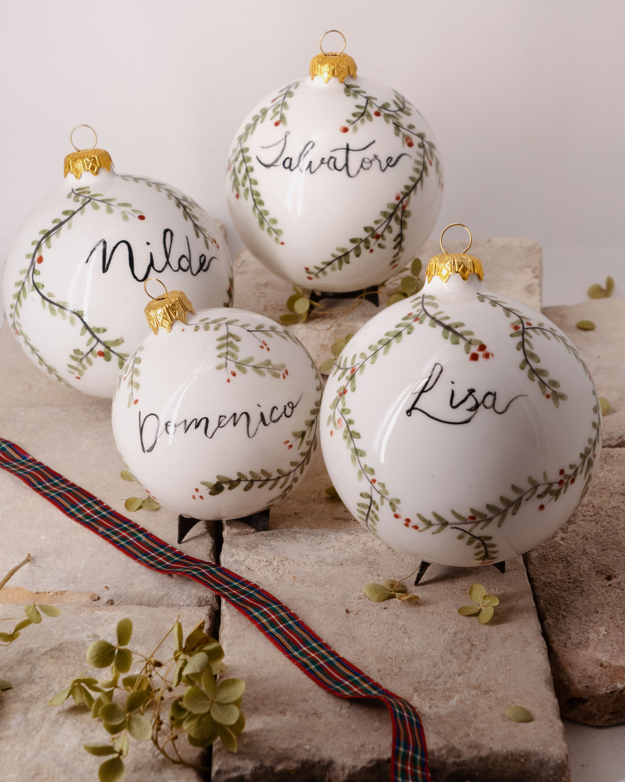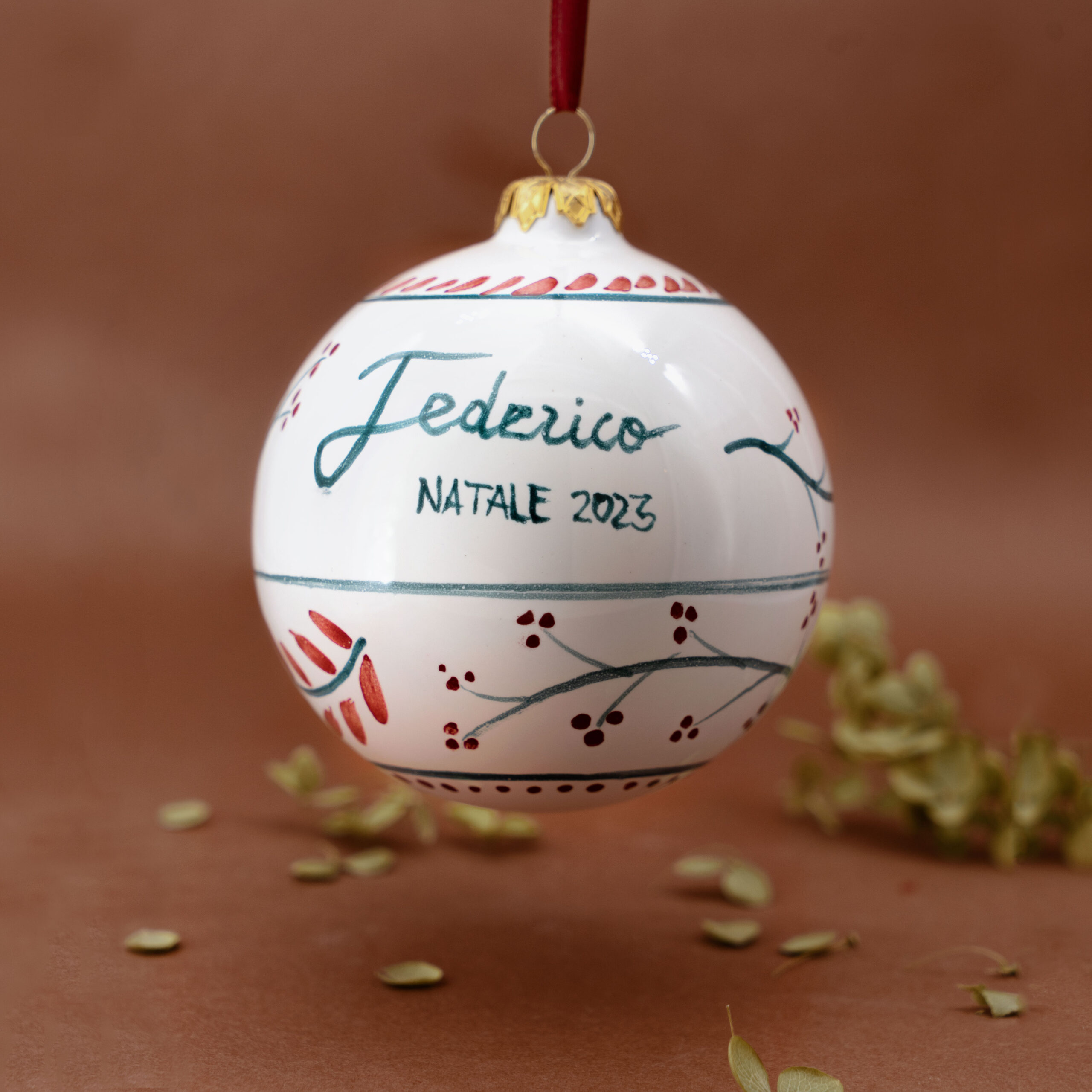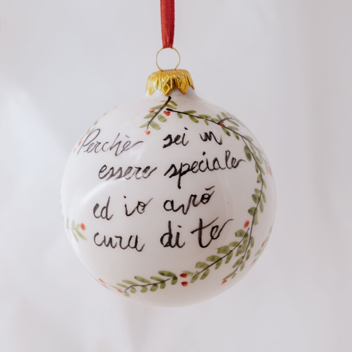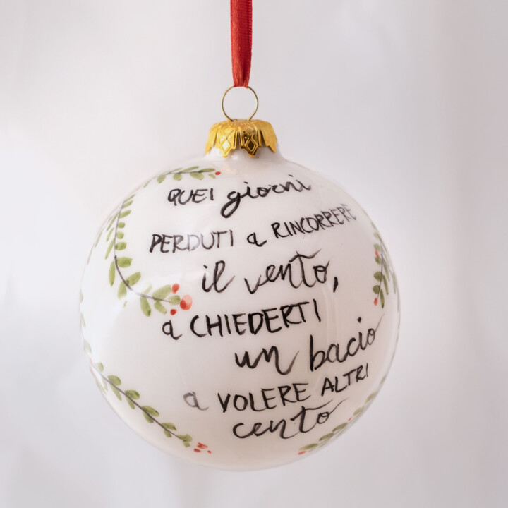 Palline di Natale in ceramica, diametro circa 8cm, realizzate interamente a mano da sapienti mani artigiane. Decorazioni dall’eleganza senza tempo con un tocco di tradizione. Rosse, bianche, a maiolica dipinte a mano, incise con una texture speciale e con i classici schizzi pugliesi.