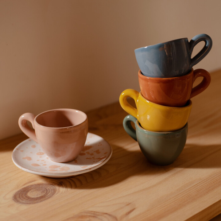 Tazzine da caffè in ceramica fatte a mano e smaltate con smalti lucidi privi di piombo. Vendute singolarmente o in set, disponibili in oltre 15 colorazioni differenti. Le immagini sono puramente rappresentative poiché ogni pezzo è realizzato e decorato a mano. Eventuali imperfezioni ne dimostrano la natura artigianale. Le tazzine possono essere realizzate anche con numerosissimi smalti colorati Pronte per la spedizione in 2 settimane